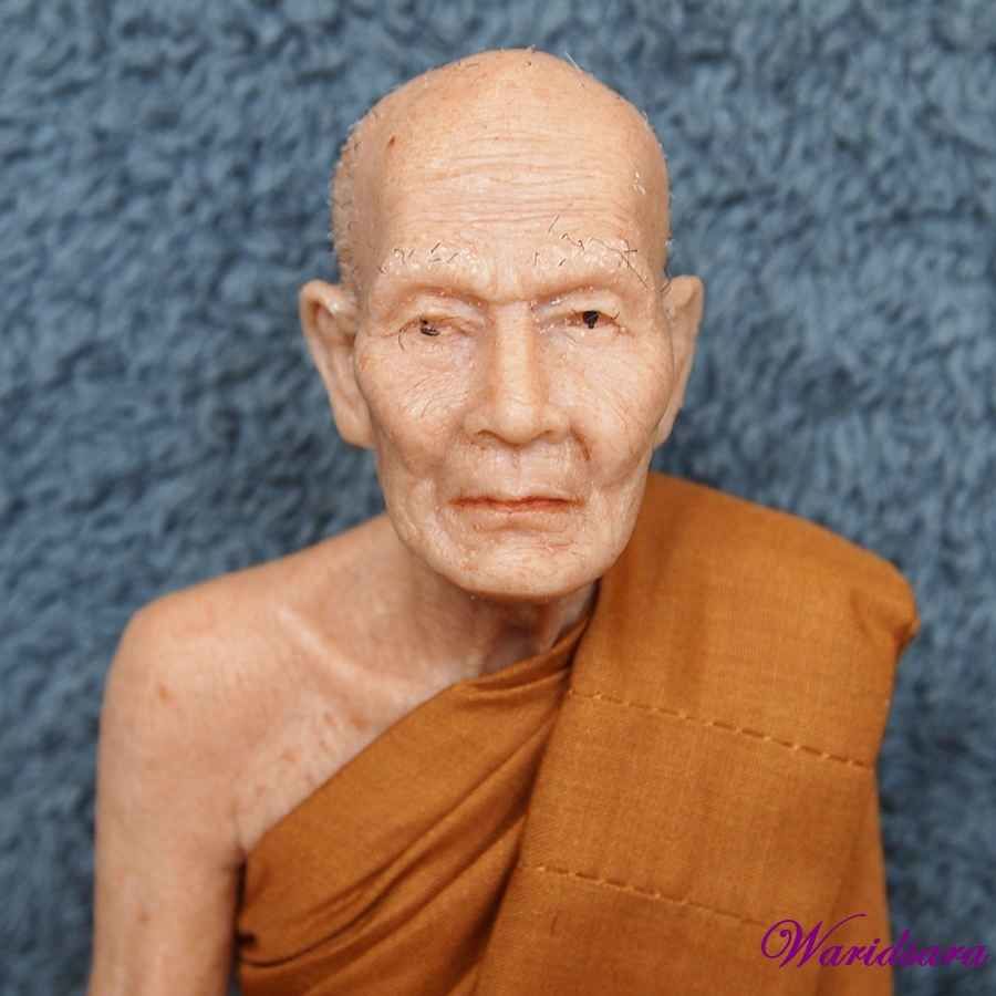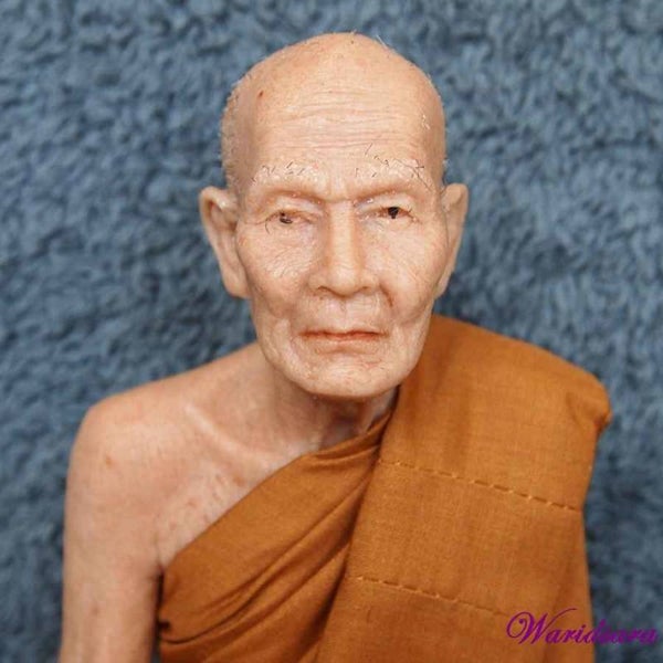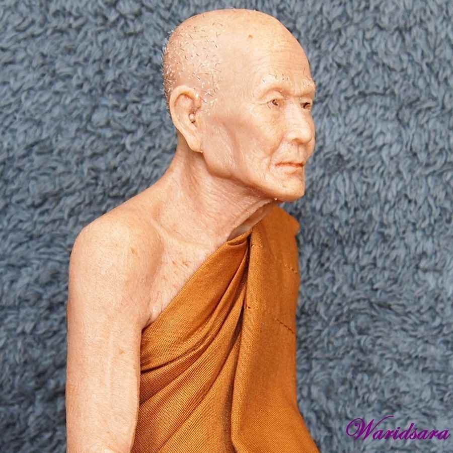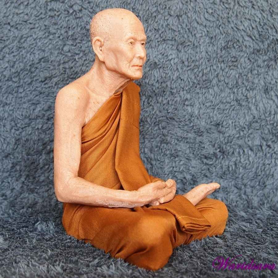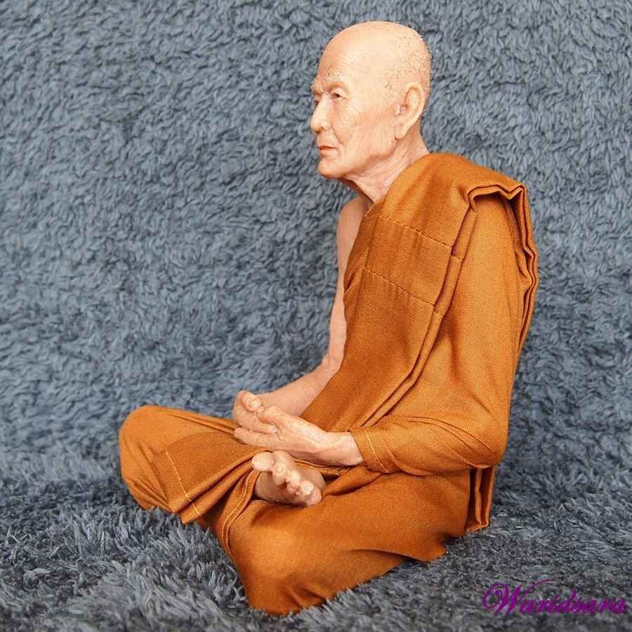 Geheel met de hand vervaardigde Thais Boeddhistische monnik. De monnik is geheel in de originele stijl vervaardigd naar beeltenis van de inmiddels overleden monnik. De kleding is in originele kleurstelling en dracht zoals deze in het klooster van deze monnik werd en nog steeds wordt gedragen.