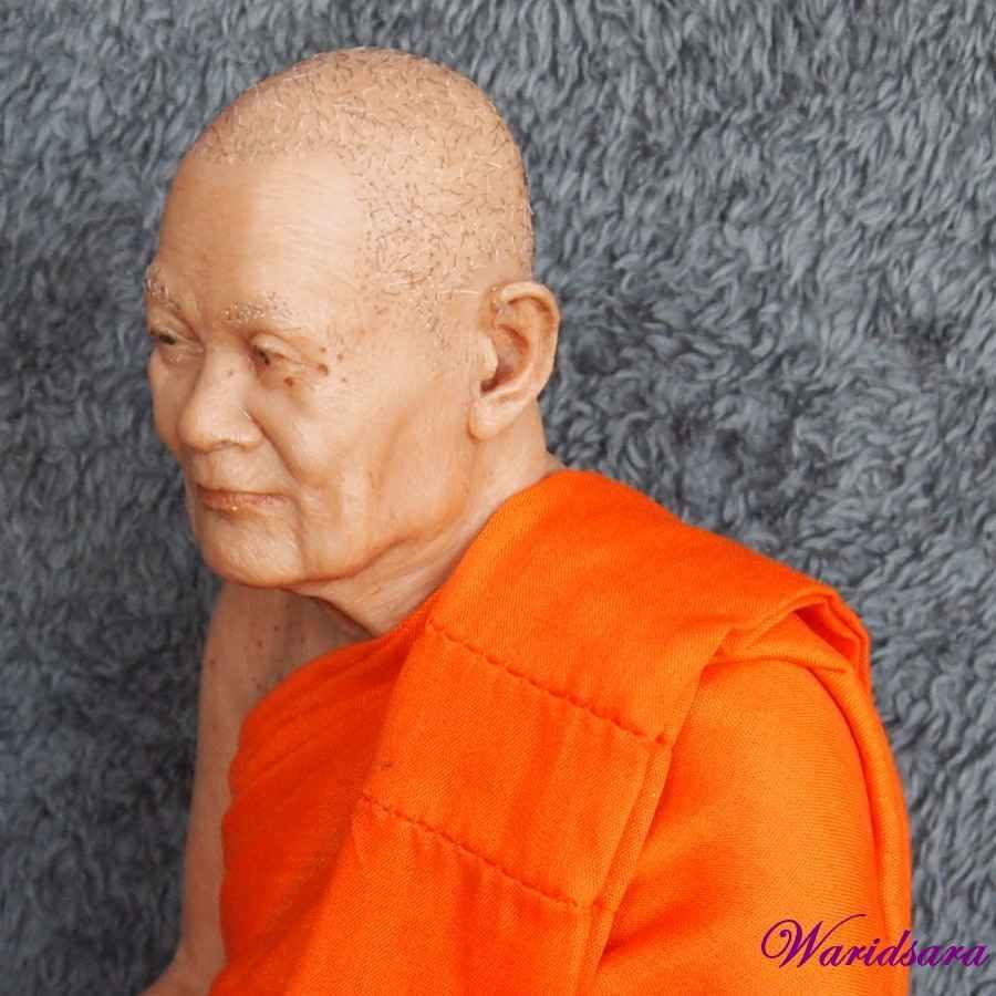 Geheel met de hand vervaardigde Thais Boeddhistische monnik. De monnik is geheel in de originele stijl vervaardigd naar beeltenis van de inmiddels overleden monnik. De kleding is in originele kleurstelling en dracht zoals deze in het klooster van deze monnik werd en nog steeds wordt gedragen.