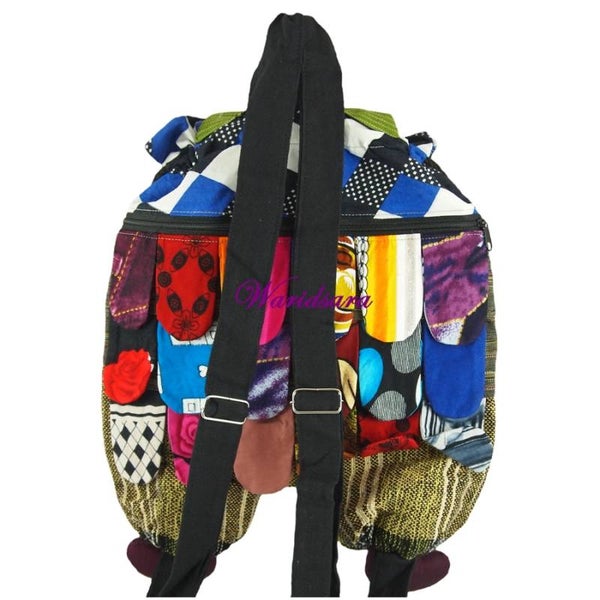 Handgemaakt van stevig katoen. Schattig en opvallende tas met heel veel kleuren. Naast de binnenzak is er een extra zakje aan de voor en achterkant, afsluitbaar met een rits. De rugzak heeft een in lengte verstelbare band. Elke tas is uniek, er zijn geen twee producten exact hetzelfde. De kleuren kunnen dus per tas iets afwijken van het getoonde exemplaar.