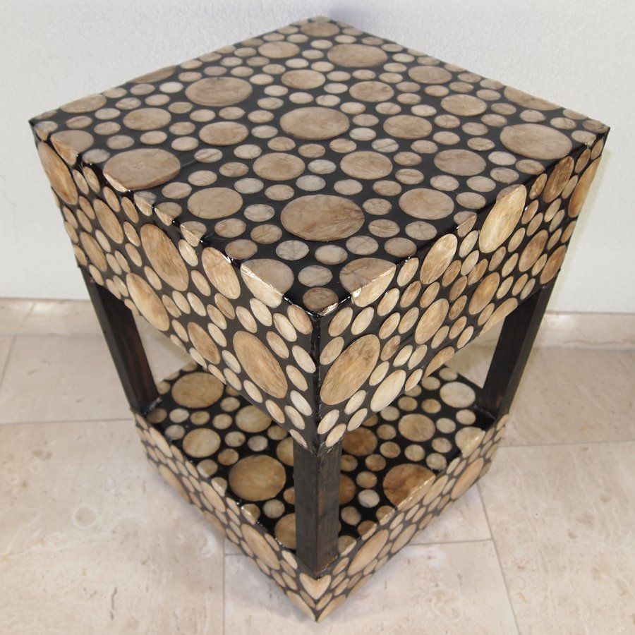 Wij hebben een aantal exclusieve bijzettafels. Deze zijn met de handgemaakt naar ons eigen idee van schelpen in een glasfiber verbinding.