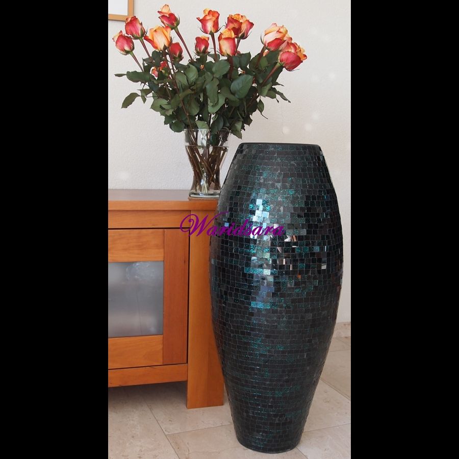 Deze mozaïekvazen zijn gemaakt van terracotta, ingelegd met stukjes glas in mozaïek. Als deze vazen "gevangen" worden door het zonlicht dan zie je het extra effect van deze mozaïek pas goed en worden ze een echte blikvanger in elke kamer.