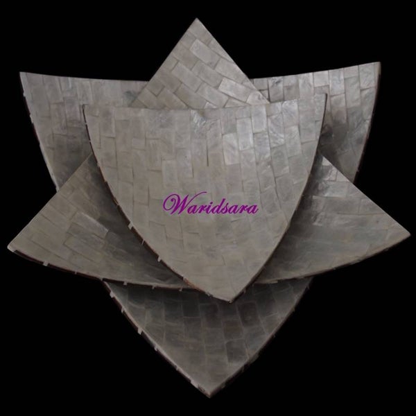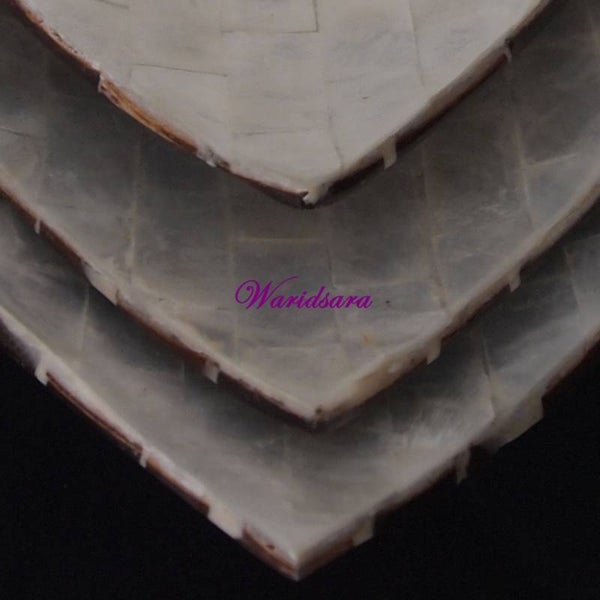 Deze schalen zijn gemaakt van geslepen capiz schelpen gehard in een glasfiber verbinding. Al onze schalen zijn met de hand gemaakt en dus per definitie uniek. Ondanks dat dit handwerk is weten wij de prijs aantrekkelijk te houden door rechtstreeks in te kopen bij een familiebedrijf uit Indonesie.