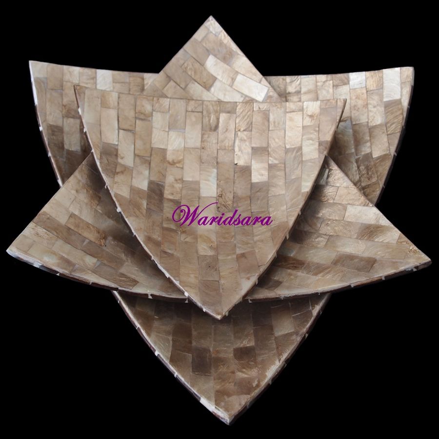 Deze schalen zijn gemaakt van geslepen capiz schelpen gehard in een glasfiber verbinding. Al onze schalen zijn met de hand gemaakt en dus per definitie uniek. Ondanks dat dit handwerk is weten wij de prijs aantrekkelijk te houden door rechtstreeks in te kopen bij een familiebedrijf uit Indonesie.