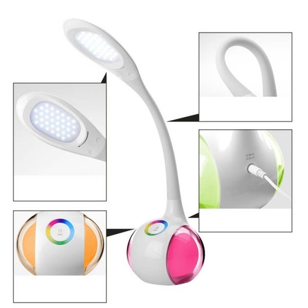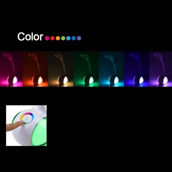 De color sensor touch LED bureaulamp is een combinatie van RGB moodlight en leeslamp. Met deze RGB moodlight kun je je kamer aanpassen aan je persoonlijk favoriete kleur middels het touch-sensitive kleurenwiel. Je kunt kiezen uit maar liefst 256 kleuren of automatische kleurverandering.