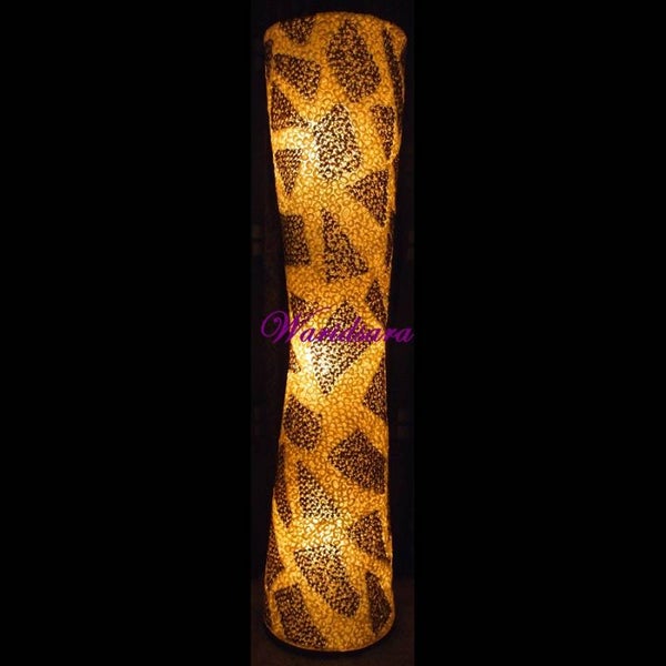 De diameter van de lamp loopt van 27 cm in het midden uit naar is 37 cm aan de boven en onderkant. De lamp is 160 cm hoog. De lamp heeft 3 lichtpunten.
