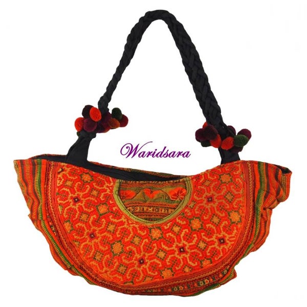 Deze tassen zijn handgemaakt van de prachtige traditionele stoffen van de Hmong Tribe (Hmong betekent “vrij zijn”). Kleurige tassen in de vorm van een halve maan met (korte) gevlochten draagband.