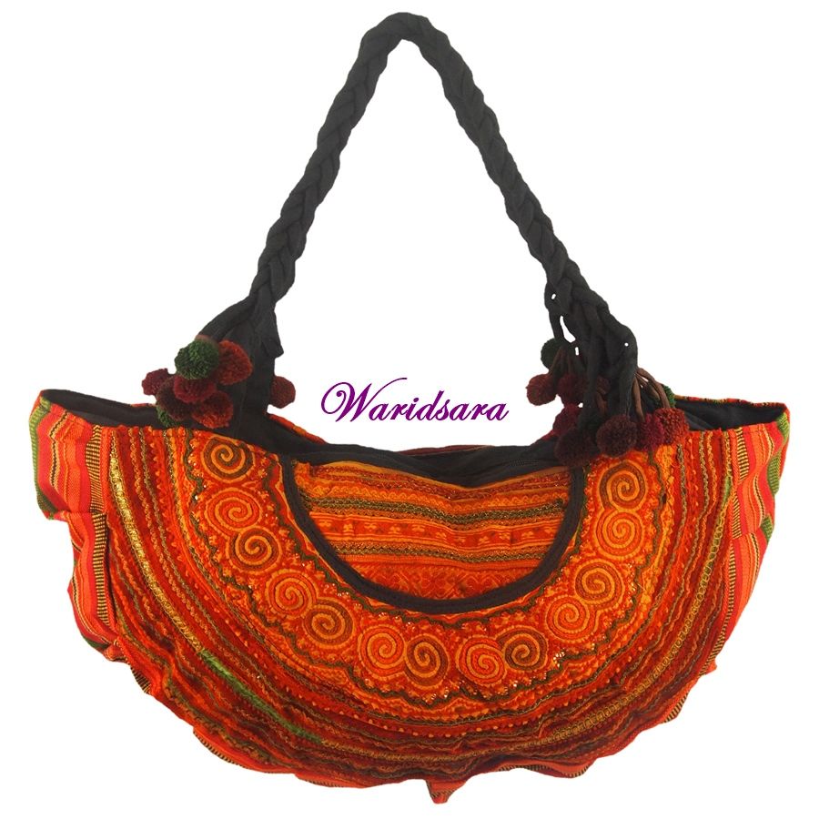 Deze tassen zijn handgemaakt van de prachtige traditionele stoffen van de Hmong Tribe (Hmong betekent “vrij zijn”). Kleurige tassen in de vorm van een halve maan met (korte) gevlochten draagband.