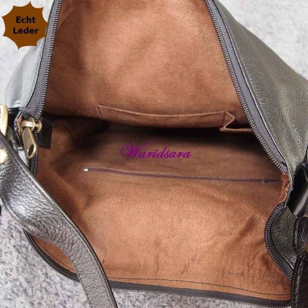 Mooie damestas, gemaakt van hoogwaardig kalfsleer. Deze trendy leren tas kunt u met alles combineren en is tijdloos. Vakje aan de voorkant afsluitbaar met een magneetclip en aan de achterkant met een rits. De binnenkant is mooi bekleed met duurzaam materiaal, heeft een ritssluiting en twee extra zakken voor de portemonnee en mobiele telefoon. De draagband is verstelbaar en in lengte aanpasbaar, zo is deze tas in een handomdraai te gebruiken als schoudertas.