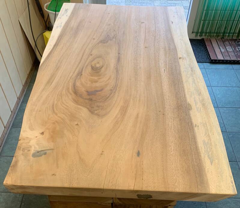 Wij hebben tafels van blanco suar hout. Deze kunt u blanco laten of zelf een afwerklaag geven. Teven hebben wij tafels die wij een afwerklaag hebben gegeven van hoogwaardige parketolie. Alle bladen zijn massief en uit 1 stuk.